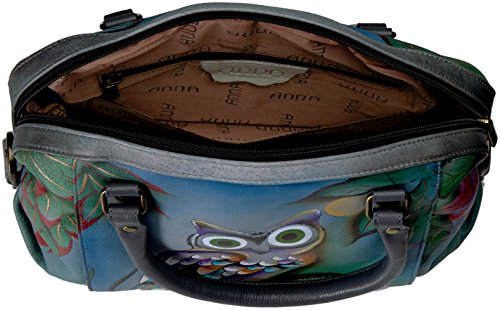 -. Title : Anuschka Anna Handpainted Leather Zip Top Medium Satchel-Midnight Owl