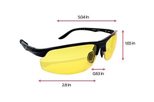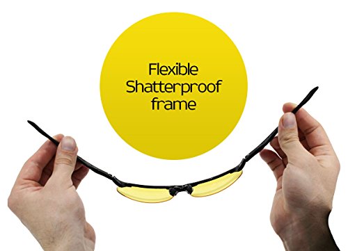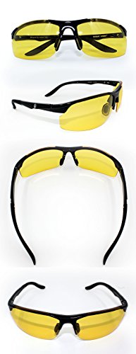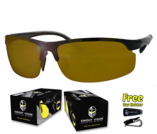 - Feature : 2IN1 SET Of HD Driving Glasses - Yellow Lens Glasses For Night Vision & Copper Lens for HD Day Driving, Fishing, Hunting, Cycling and Hiking! / 100% POLARIZED YELLOW LENSES. Polarized lenses reduce glare from the headlights of other vehicles, pavement, and other reflective surfaces by filtering light coming from different angles. These special lenses make colors and objects appear clearer, so you can see every detail of the open road. Note that some companies claim to sell polarized glasses, but in fact their glasses use regular non-polarized lenses. / LIGHTWEIGHT FRAME (only 13g) gives you preferred comfort and a semi-rimless frame design allows for an unobstructed downward view with UV400 Protection. Knight Visor's flexible frame also enables them to be worn over most prescription glasses. / HIGH QUALITY MATERIALS - Shatter-Proof Lens - can also be used as SAFETY GLASSES. / Comes with Knight Visor Car Clip Holder to Protect the Glasses while they're not in use.