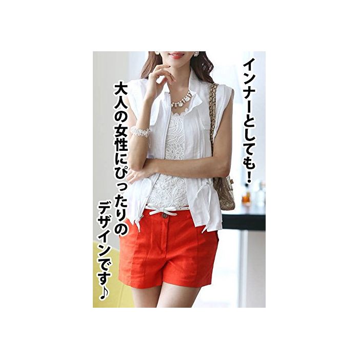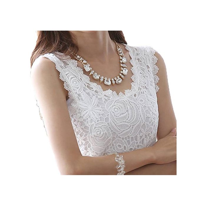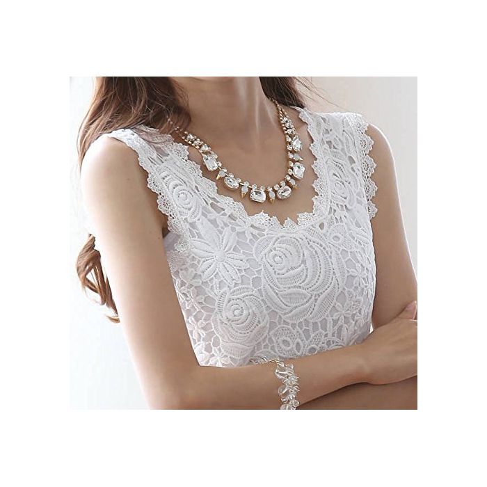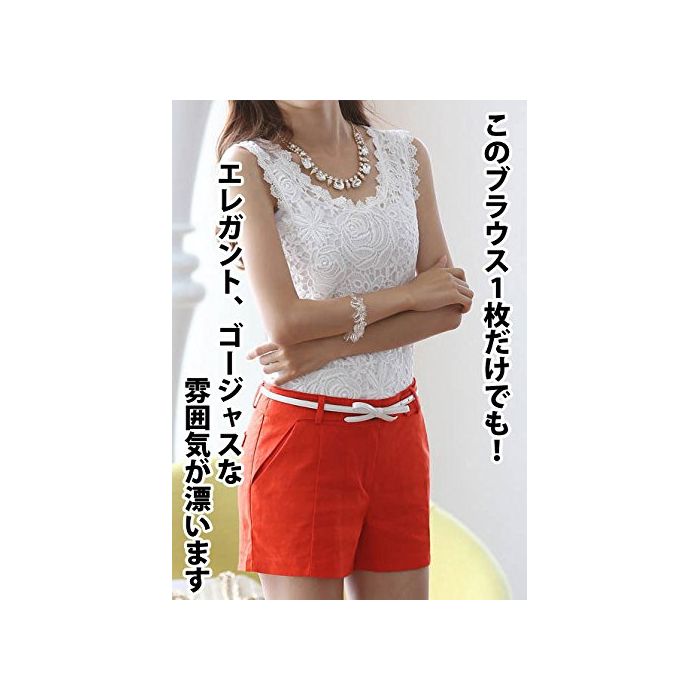 (뉴 스토리) NEWSTORY 꽃무늬 모티브 레이스 가 귀엽게 가련 으로 보인 노슬리브 엘레강트블라우스 A004