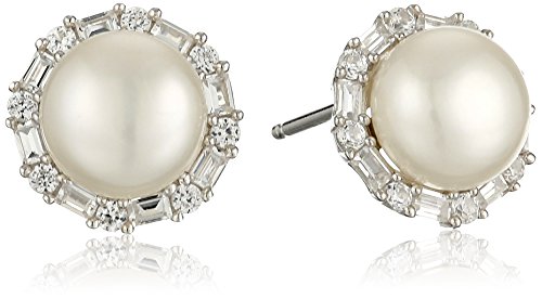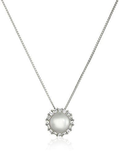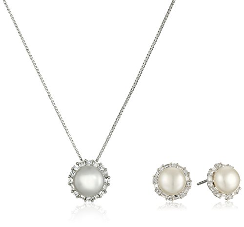 -. Title : Sterling Silver White Freshwater Cultured Pearl with Created White Sapphire Accent Halo Stud Earrings and Pendant Necklace Jewelry Set, 18"