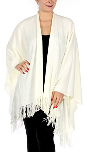 (Anytime Scarf)/Accessories/Scarves/DIRECT FROM USA/CASHMERE WHITE FRINGE PONCHO RUANA PLUS SIZE WRAP SHAWL