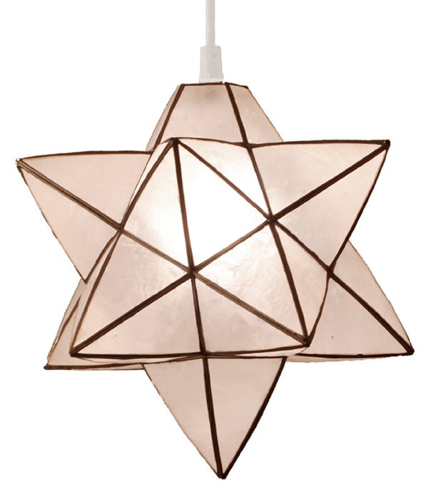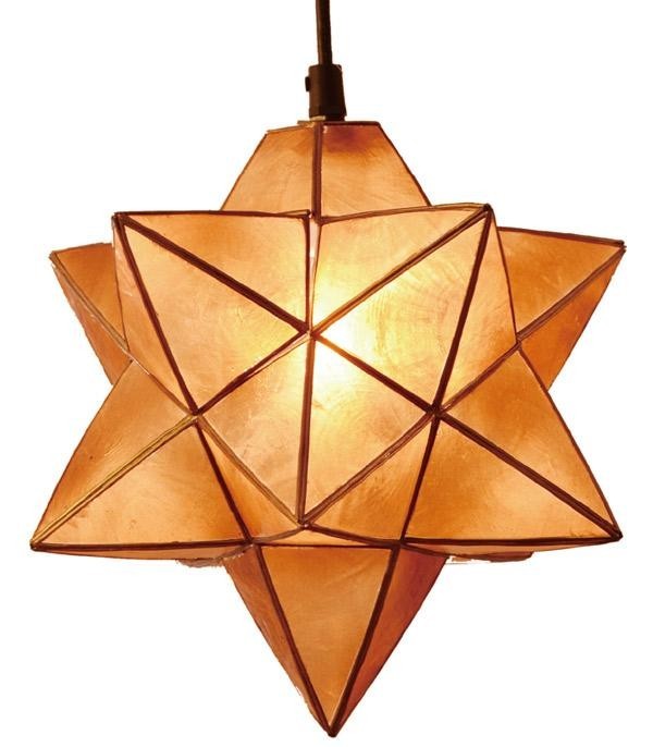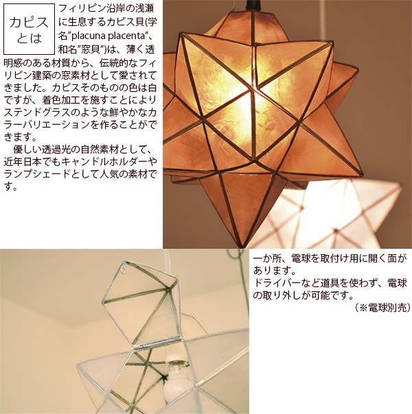 | 人気の星型ペンダントライトをカピスで作りました。南国の海辺の雰囲気を感じる素材感と、アンティーク仕様のフレームが魅力のペンダントライトです。ゆったりとした時間を過ごす空間におすすめです。 |