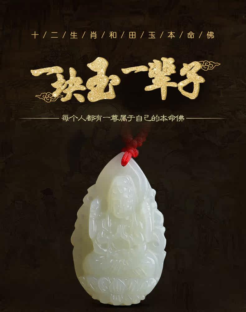 和田玉千手观音菩萨吊坠 生肖属鼠本命佛守护神男女项链饰品