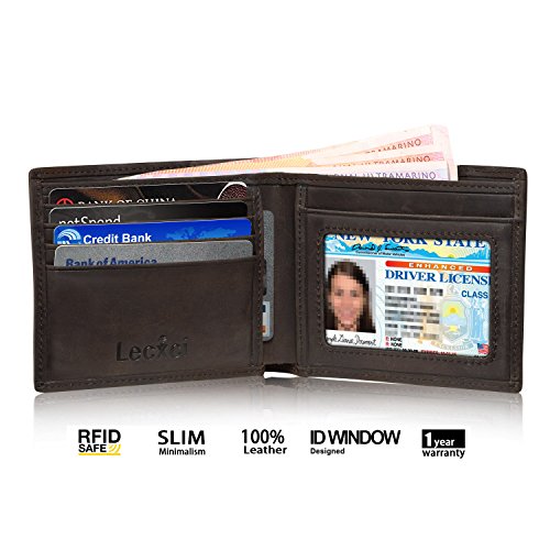 -. Title : Lecxci Mens RFID Blocking Bifold Slim Genuine Leather Thin Front Pocket Wallet