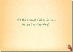 -. Feature : Inside Verse: It's the annual Turkey Drive.. Happy Thanksgiving / Card Size: 6.7x4.75 inches / Includes: 1 card / 1 orange envelope / Paper Stock: Recycled Heavy Cardstock / Special Features: Recycled Paper