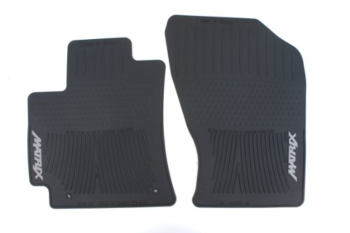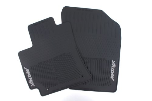 -. Binding : Automotive -. Brand : Toyota -. Color : Black -. Feature : Fits: 2009-2011 Toyota Matrix 5-door Sedan / Helps protect vehicle's factory carpet against mud, embedded sand, stains and soils / Replaces standard carpet floor mats / Ribbed channel design / Easy to clean - can be wiped off -. Label : Toyota -. Manufacturer : Toyota -. ManufacturerPartsWarrantyDescription : Parts -. Model : PT908-1201W-02 -. MPN : PT908-1201W-02 -. PackageQuantity : 1 -. PartNumber : PT908-1201W-02 -. ProductGroup : Automotive Parts and Accessories -. ProductTypeName : AUTO_ACCESSORY -. Publisher : Toyota -. ReleaseDate : 2013-01-23 -. Studio : Toyota -. Title : Genuine Toyota Accessories PT908-1201W-02 Front All-Weather Floor Mat - (Black), Set of 2
