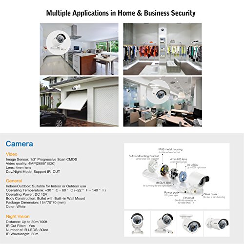 -. Feature : 【True Plug & Play HIKI POE Security Camera System】You can setup the camera with the Ethernet cable only. No more power supply for camera and more convenient to run the system for your business and home. Video for how to install this ANNKE poe security system 【https://www.youtube.com/watch?v=ZJvWokRWzFY】 / 【Hight Compatibility NVR】 NVR supports up to 6MP recording and it is able to operate with third party cameras including ACTI, Arecont, AXIS, Bosch, Brickcom, Canon, ONVIF, Panasonic, Pelco, PISA, Samsung etc. / 【4MP WDR Mini Bullet Network Camera】Up to 30m IR range night vision and auto IR-cut; IP66 metallic housing and bracket / 【Smart Hard Disk Detection and Email Alert】Stable system with S.M.A.R.T hard disk bad sector detection, automatically firmware update capability and low-noise cooling fan. Smart email alert and powerful backup function,Support free Hikvision DDNS and EZVIZ cloud service. / 【H.264+ video compression¡¿ Save bandwidth for 70% than normal H.264; Virtual Host for easy IP camera setup and configuration