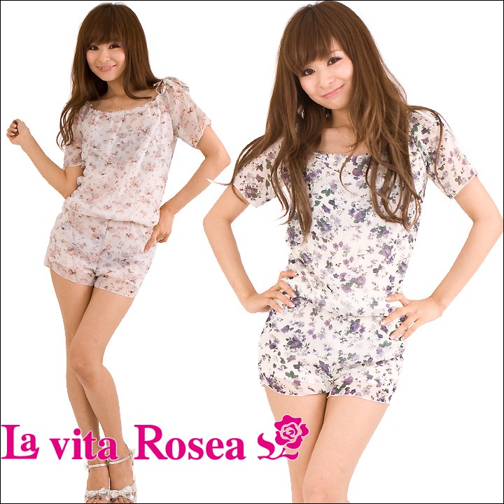 フラワー シフォン ロンパース(DL) 大きいサイズ 春 セクシー レディース ギャル服 ギャル 大人 13号 15号 17号 19号 LL 2L 3L 4L 5L 6L 6L