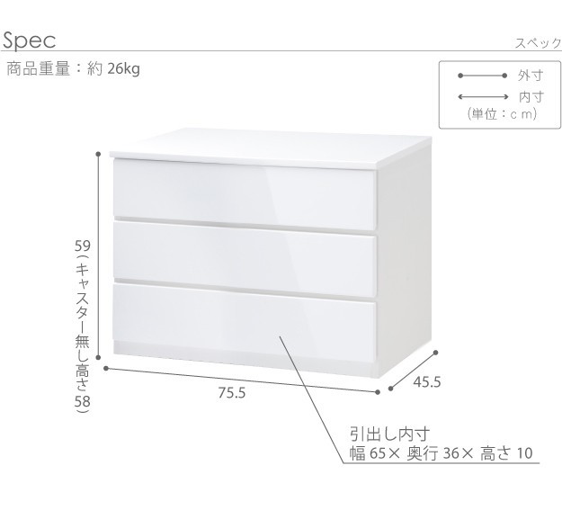 引出し内寸:幅65x奥行36x高さ10cm