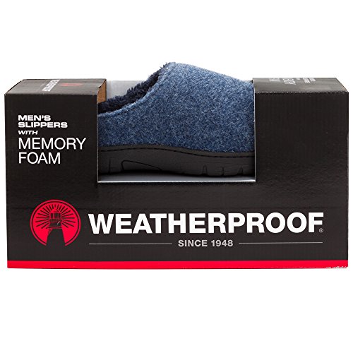 Studio : Weatherproof Publisher : Weatherproof Binding : Apparel Product Description This mens clog slipper by Weatherproof provides your foot with great support and comfort. Hardsole rubber bottoms allow this shoe to be worn indoor and outdoor. The textured bottom provide a slip-proof wear. Memory foam cushion will give your feel complete relaxation after a long work day. Get the look of luxury with this lightweight boiled wool slide on clog slipper for men 0