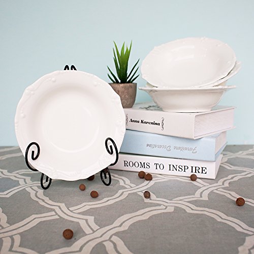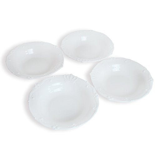 Porcelain Embossed Crown 7-1/2-Inch Rimmed Soup/Pasta/Cereal Bowls, Set of 4
