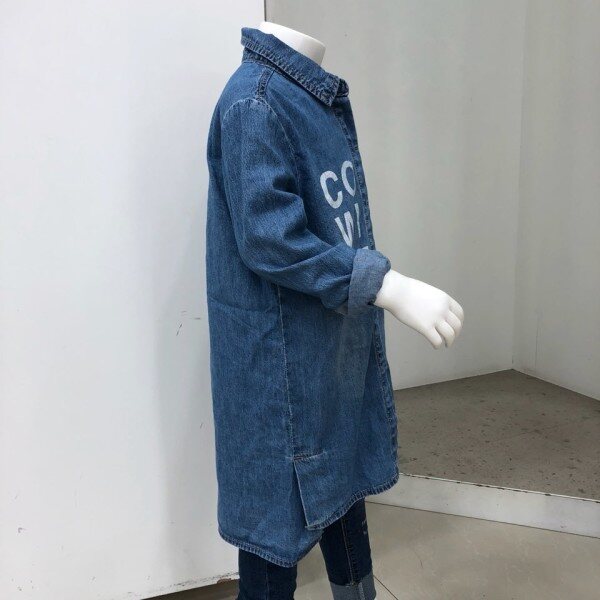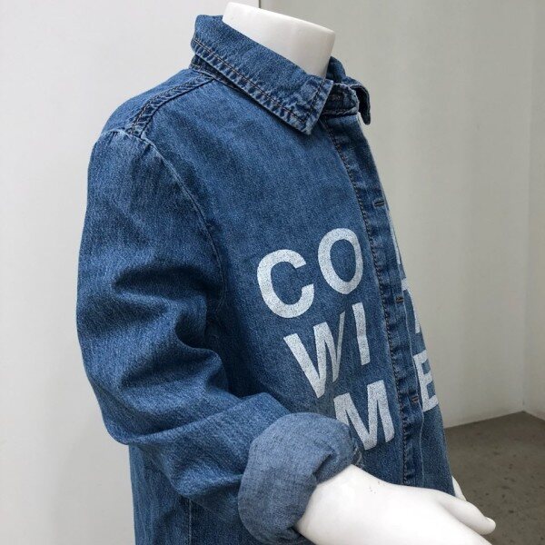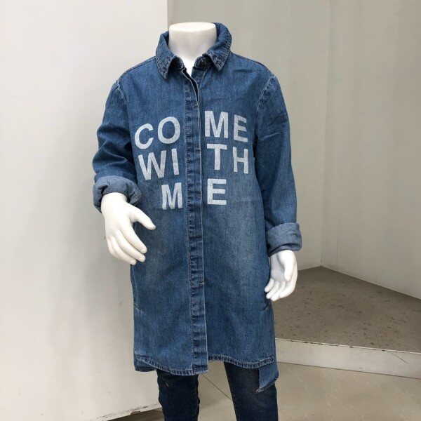 2018년 가을 신상 여아 ML톤 그래피티 셔츠형 원피스 입니다. 미디움 인디고 톤의 깔끔한 워싱의 데님셔츠로 앞판의 아트웍과 기존 다른 옆트밈이 포인트이며, 앞 뒤 기장 차이를 준 디자인 입니다.