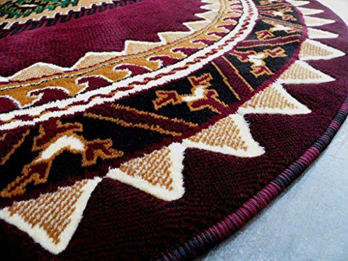 High quality affordable round area rug. Easy to clean & vacuum. will upgrade the look and feel of your home or office. Unique Native American design that would look great on any type of flooring.