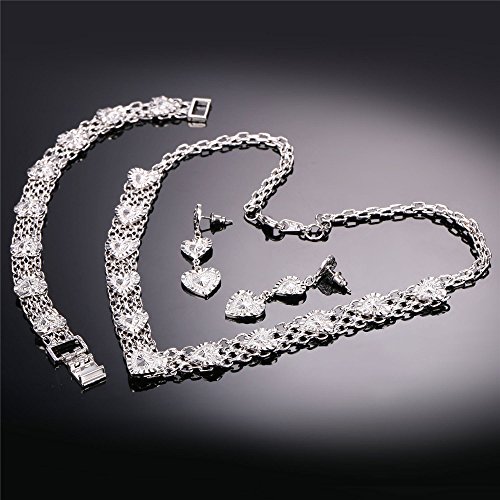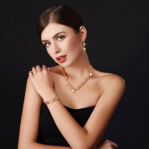 -. Title : Heart To Heart Necklace Sets Copper 18K Gold Plated Women Wedding Jewelry Necklace Bracelet Earrings Set