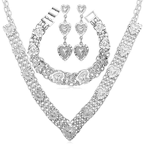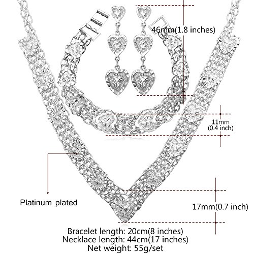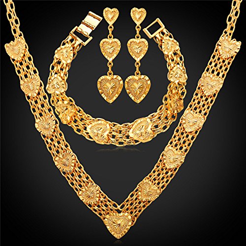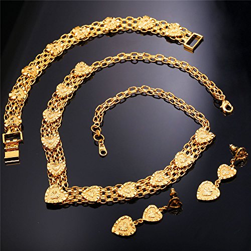 -. Feature : Heart shaped / Material:Copper based,plated with 18k stamp gold / Big wedding,party jewelry sets / Dimensions:necklace 17",bracelet 8",earrings 1.8". / Nickel free