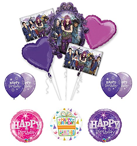 -. Feature : (1) 31" x 25" Descendants Jumbo Foil Balloon / (2) 16" x 12" Descendants Junior Shape Foil Balloon (1) 18" Birthday Present Foil Balloon / (2) 18" Birthday Sparkle Foil Balloons 1- Pink and 1- Purple / (2) 19" Heart Shape Foil Balloons 1- Purple and 1- Fuchsia Pink / (4) 11" Latex Birthday Sparkle P.R.Int Balloons 2- Purple, 2- Purple Violet