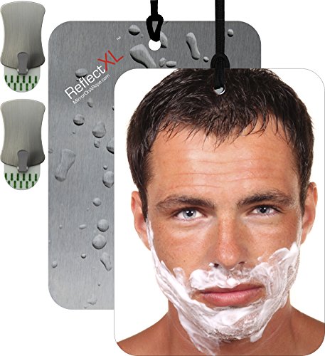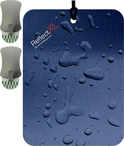 ReflectXL Shower Mirror by Mirror On A Rope. Our Largest Mirror. Shatterproof. Easily Eliminate Fog and Shadows. Includes Two Removable Adhesive Hooks and an Adjustible Rope (Wet Steel)