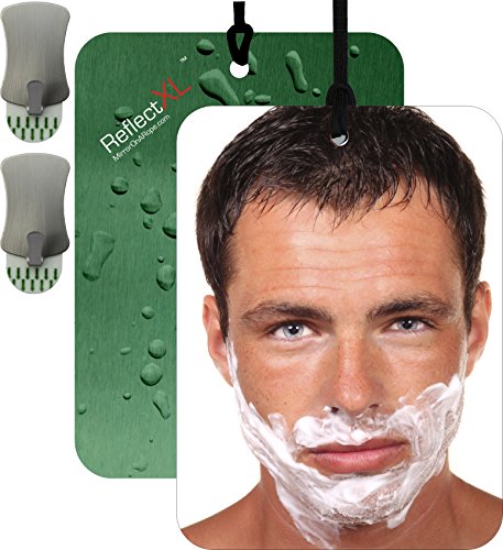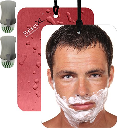 ReflectXL Shower Mirror by Mirror On A Rope. Our Largest Mirror. Shatterproof. Easily Eliminate Fog and Shadows. Includes Two Removable Adhesive Hooks and an Adjustible Rope (Unclad)