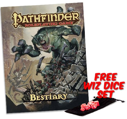 -. Binding : Toy -. EAN : 0919998991897 -. Feature : Pathfinder Bestiary Book and free set of polyhedral Wiz Dice / Must-have companion to Pathfinder Roleplaying Core Rulebook (Sold Separately) / Hardcover book features 327 fully-illustrated pages / Contains more than 350 grizzly monsters / Extensive and universal rules to enhance game play are included -. Label : Paizo Publishing -. Manufacturer : Paizo Publishing -. PackageQuantity : 1 -. ProductGroup : Toy -. ProductTypeName : TOYS_AND_GAMES -. Publisher : Paizo Publishing -. Studio : Paizo Publishing -. Title : Pathfinder Roleplaying Game Bestiary Book (Hardcover) with Free Set of 7 Polyhedral Wiz Dice -. UPC : 919998991897