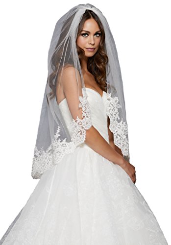 (Passat)/Accessories/Scarves/DIRECT FROM USA/Passat 3 Colors Single-Tier 36" Fingertip Length Wedding Veil with Lace, Beaded with Sequins an...