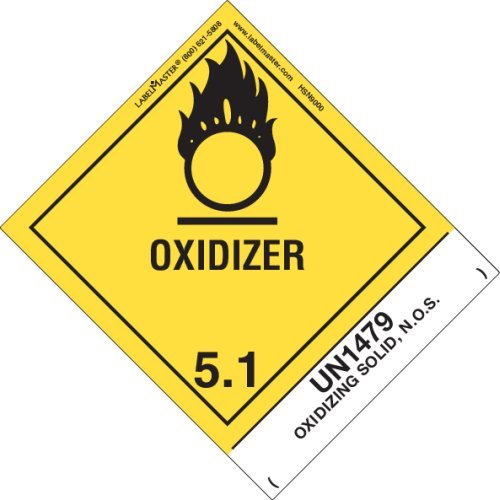 Labelmaster HSN9000 Oxidizer Label, UN1479 Oxidizing Solid, N.O.S, Paper, Made in the U.S.A, 4.75" x 4" (Pack of 500)