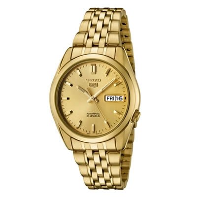 -. Binding : Watch -. Brand : Seiko Watches -. Color : Gold -. Department : mens -. EAN : 4900969894077 -. Feature : Precise 21-jewel Japanese- Automatic movement: functions without a battery; powers automatically with the movement of your arm / Durable mineral hardlex crystal: brushed and polished gold-tone stainless steel case and bracelet / Day function in english and spanish: date function / Gold textured logo dial with gold-tone hands and hour markers; luminous; exhibition case back / Water resistant to 99 feet (30 M) -. Label : Seiko -. Manufacturer : Seiko -. Model : SNK366K -. MPN : SNK366K -. PackageQuantity : 1 -. PartNumber : SNK366K -. ProductGroup : Watch -. ProductTypeName : WATCH -. Publisher : Seiko -. Studio : Seiko -. Title : Seiko Men's SNK366K Seiko 5 Automatic Gold Dial Gold-Tone Stainless Steel Watch