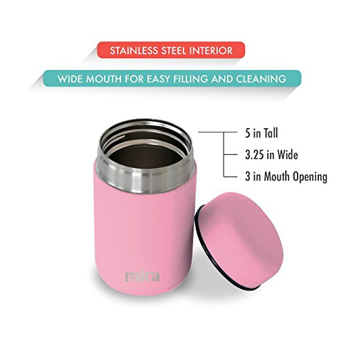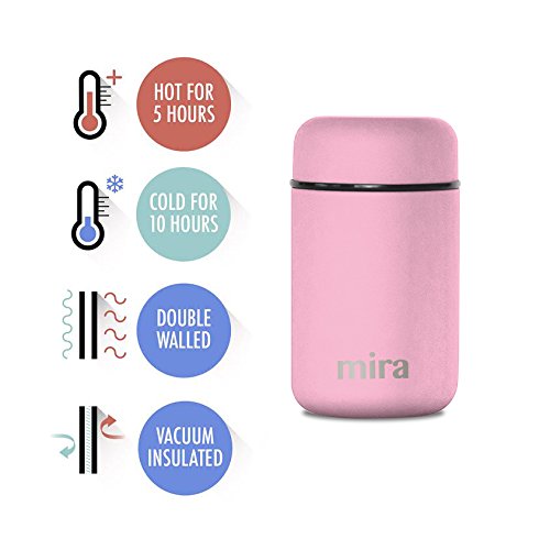 Studio : MIRA Brands Publisher : MIRA Brands Product Description MIRA Lunch, Food Jar, Vacuum Insulated Lunch Thermos, 13.5 Oz High-Quality: The MIRA durable lunch food jar is made of 18/8 food-grade stainless steel. The high-quality insulated lunch container keeps your healthy, homemade and delicious lunches and snacks hot for up to 5 hours or cold for up to 10 hours in this double wall vacuum jar. Eco-friendly, reusable, easy-to-fill wide mouth is also easy to clean. Large Capacity: The stainless steel lunch jar has a 13.5 oz (400 ml) capacity. The right size for a child's lunch or a side to an adult's meal. Our leak-proof stainless steel food storage containers are BPA, phthalates, lead and PVC free. Endless Storage Choices: Excellent choice for soups, pasta, fresh or dried fruit, pretzels and much more! MIRA Eco-Friendly reusable lunch jar for kids and adults reinforces portion control. Compact, Easy to Pack: This easy to open containers is perfect for a child's lunchbox or an adult's briefcase. No matter how much it moves around, the firm seal will prevent messy leaks. Satisfaction Guarantee: Buy with confidence! Perfect gift for birthdays or any occasion. We have great confidence in the quality of our products, which is why we are offering you a risk-free purchase. In the unlikely event our product fails to meet or exceed your expectations, you may return our product within the first 30 days post-purchase to receive a FULL refund. 0