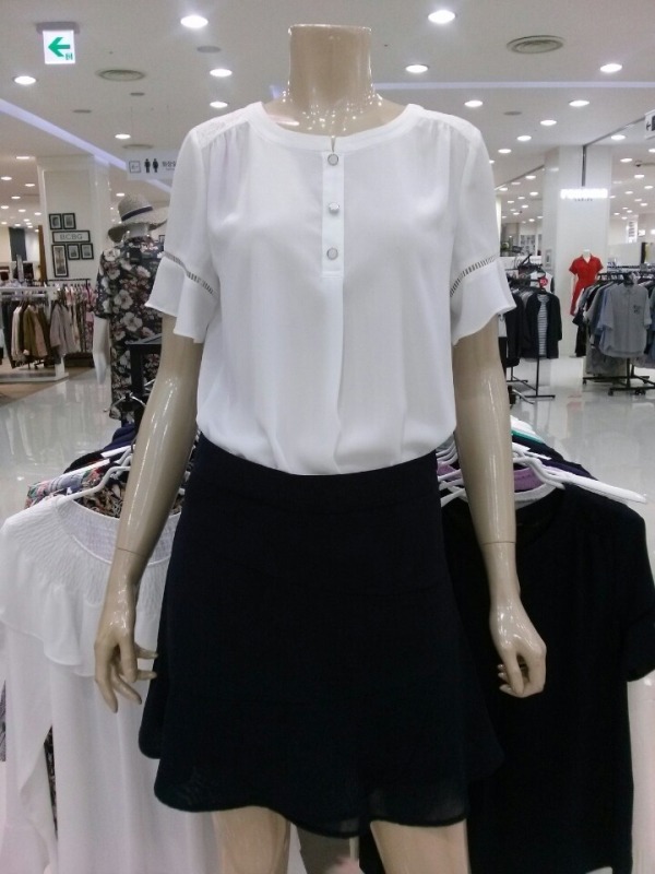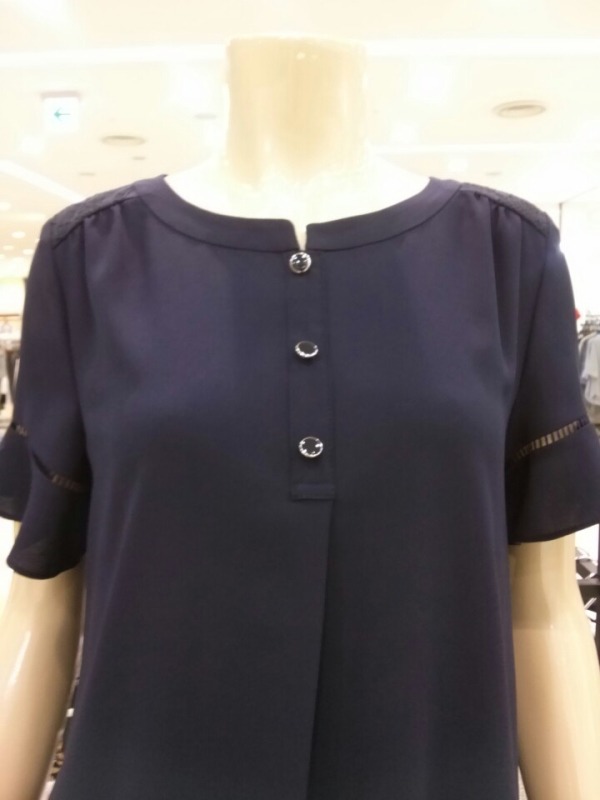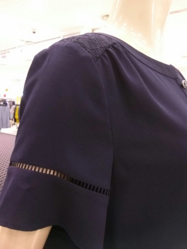 감각적인 어깨 레이스 디테일이 돋보이는 블라우스입니다