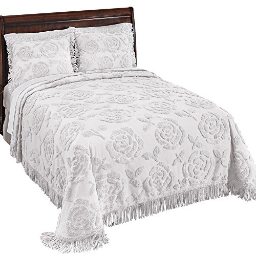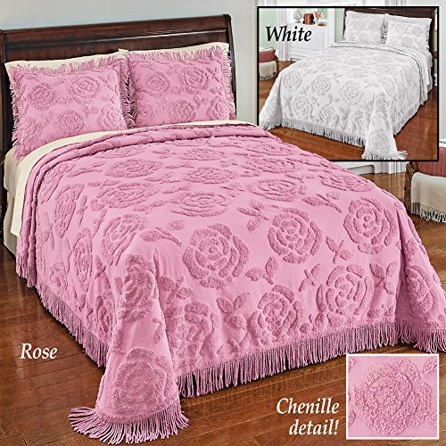 Studio : Collections Etc Publisher : Collections Etc Product Description Rose Blossom Chenille Lightweight Bedspread Description This beautifully textured chenille bedspread will make a wonderful addition to your home. Featuring a lovely raised blossom pattern the chenille fabric gives this spread a soft and cozy feel, while the fringed border is the perfect finishing touch. Available in rose or white. Shams sold separately. Machine wash. Cotton; imported. Color available in Rose or White. Size available in Twin (110" x 78"), Full (110" x 96"), Queen (118" x 102") or King (118" x 120"). Material Type: Cotton Shop Coordinating Items [ TIP: Type the product name and item # into the search box ] - Rose Blossom Chenille Pillow Sham (Item #37633)