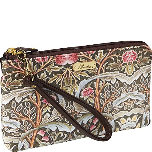 -. Title : Buxton Art Nouveau L-Zip Expandable Wallet with Removable Strap, Brown