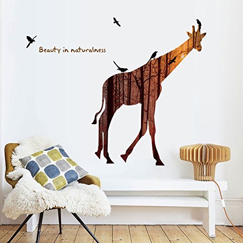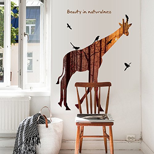 African Grasslands animals 3d Nordic Style Giraffe Bird Vivid Removable Mural Wall Stickers Wall Decal for Children Bedroom Home Decor Christmas Gift (Giraffe)