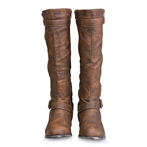 -. Title : Twisted Women's Noah Knee High Faux Leather Boots with Buckle Straps