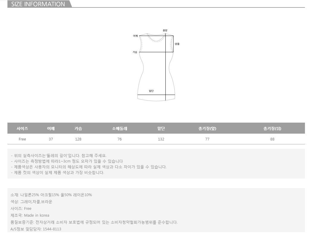 모델의 착용 컬러는 그레이 입니다.