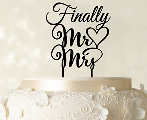 "Finally Mr And Mrs" Wedding Cake Topper Personalized Custom Name Cake Toppers Color Option Available 5"-7" Inches Wide
