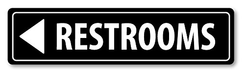 Grafken: MG1078 Aluminum Sign LARGE 2 ft x 6 in: RESTROOMS. ARROW LEFT (black/white) Style 1