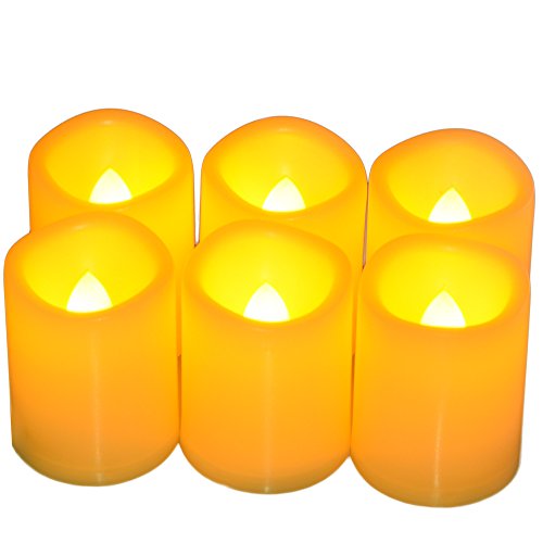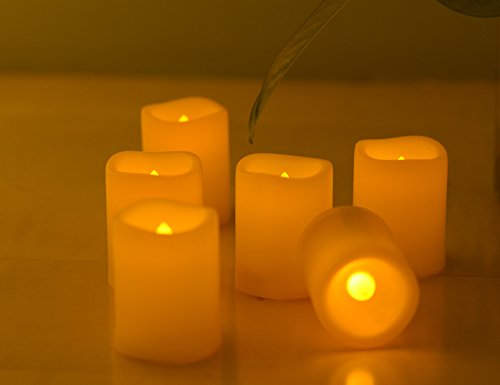 Flickering LED Flameless votive Candles with 6-H Timer,200+ Hours long Battery life,Realistic melt edge Pillar tealight for Wedding,Home dector, Birthday, Home Party Gifts(6 PCS of Ivory)