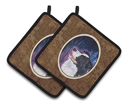 Caroline's Treasures Starry Night Border Collie Pair of Pot Holders SS8369PTHD, 7.5HX7.5W, Multicolor