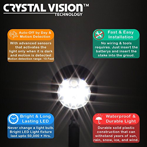 Crystal Vision Weatherproof Wireless Battery Powered Pathway LED Landscape Light Ultra Bright Spotlight with Motion Sensor 2 pack