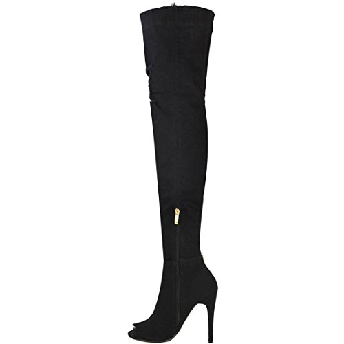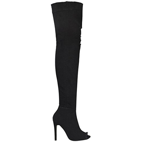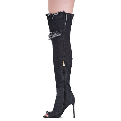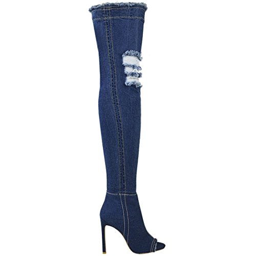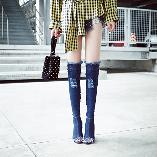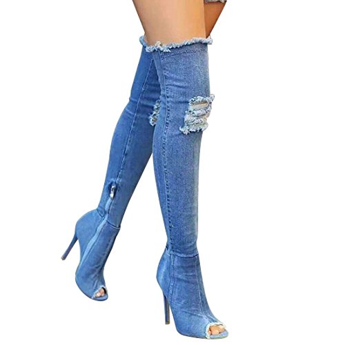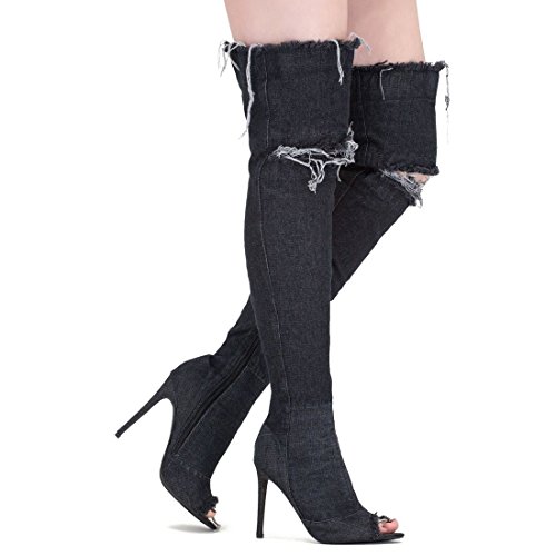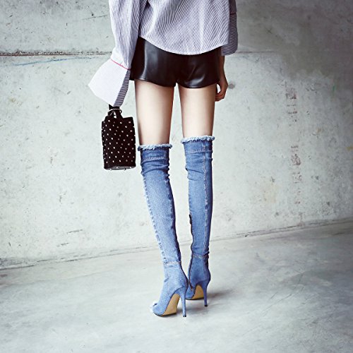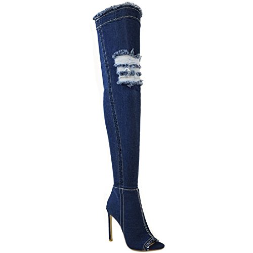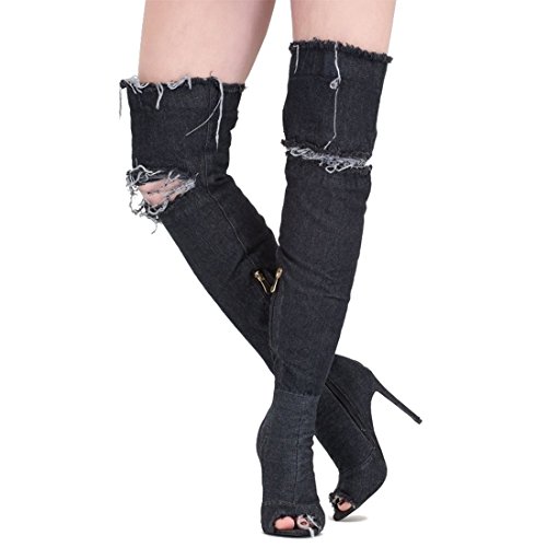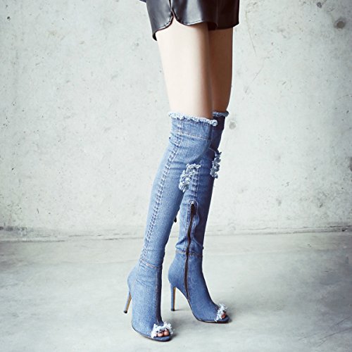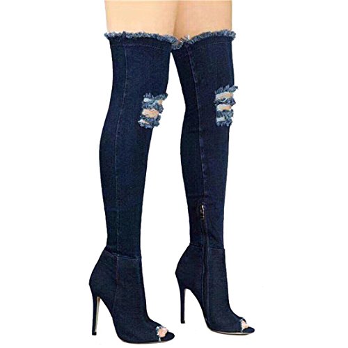Binding : Apparel Product Description Susanny is a well-established fashion shoe brand over 10 years which carries stylish and an affordable women's footwear. Susanny offers the best quality at low price and confidently ensure the prestige quality of our products. Susanny carries a diverse and wide range selection of the latest trends and hottest a la mode fashion such as Boots, Military Style, Espadrilles, Flats, Lace-Ups, Loafers Slip-Ons, Pumps, Sandals, High Heels, Platforms, Casuals, Dress Shoes, Oxfords, and many more. Search with "Susanny shoes or Leanna shoes" to see the full line of products. Over the Knee Thigh High Open Toe Sexy Stiletto Heel Denim Boots is very fashionable,you will love them. 0