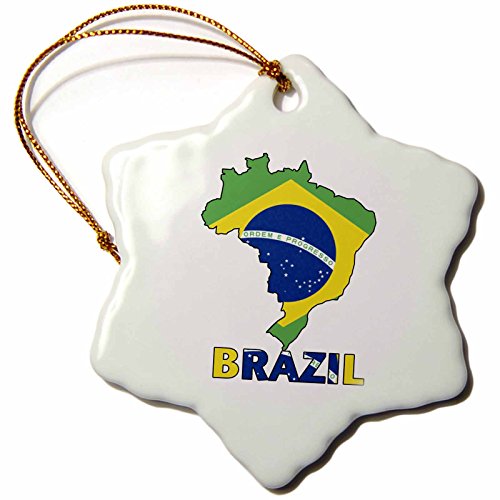 3dRose Orn_51743_1 Brazilian Flag in The Map and Letters of Brazil Snowflake Decorative Hanging Ornament, Porcelain, 3-Inch
