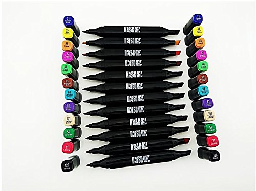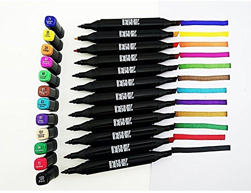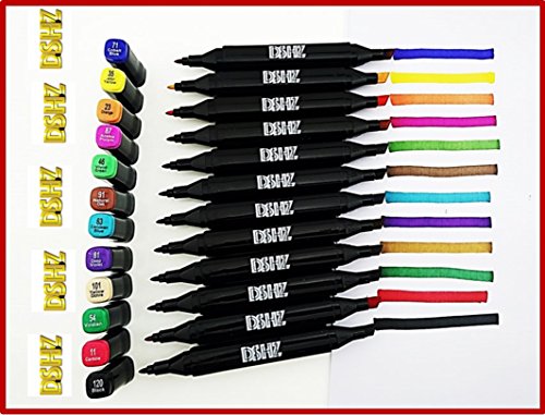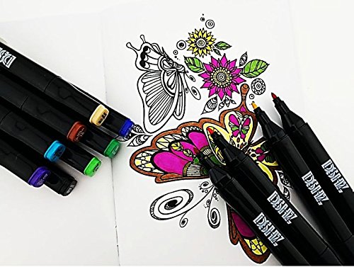 Coloured Artist Markers by DSHZ | Tip Markers Set with Non-Toxic, Alcohol Based, Fast Drying Ink |Double-Ended Coloring Pens for Writing, Drawing, and Artistic Sketches | Comes Bonus Coloring Bookand
