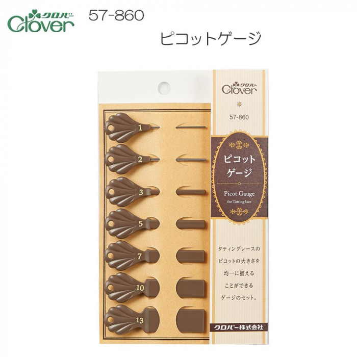 1・2・3・5・7・10・13mm用の7種類のセット。複数のピコットを続けて作ることができ便利です。糸が触れる部分に角(かど)がないので、ピコットが綺麗に仕上がります。タティングレース作品の完成度をさらに上げることができます。 |