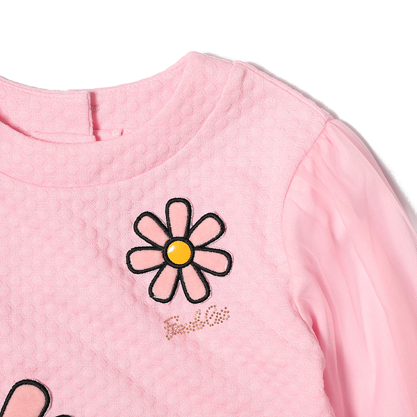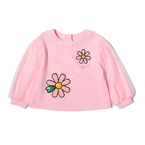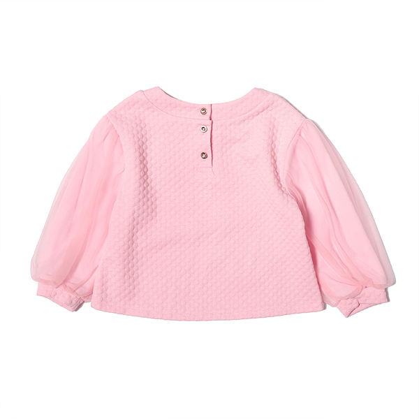 상품설명 연핑크 쟈가드 원단으로 만들어진 탑입니다. 편안한 다이마루 소재로 만들어져 착용감이 편안하며 블링한 골드 로고 핫피스 장식, 플라워 아플리케 장식으로으로 러블리한 포인트를 주었습니다. Q84DCS070과 세트 상품으로 함께 코디하시는 것을 추천드립니다.