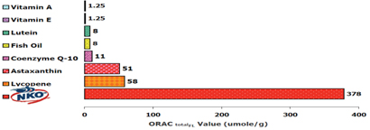 | 7.4 times greater antioxidant activity than Astaxanthin 34 times greater antioxidant activity than Coenzyme Q–10 48 times greater antioxidant activity than fish Oil 302 times greater antioxidant activity than Vitamin E! |