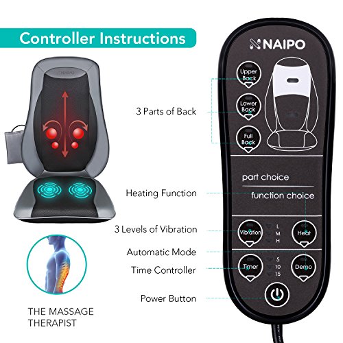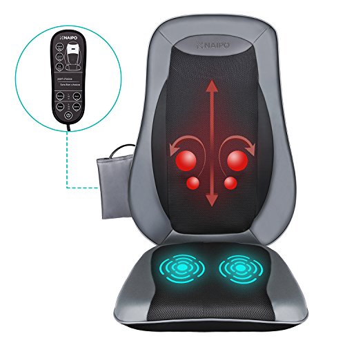 Naipo Massage Seat Cushion Shiatsu Back Massager with Heat, Deep Kneading, Rolling and Vibrating - Massage Full back for Home Office Car Use