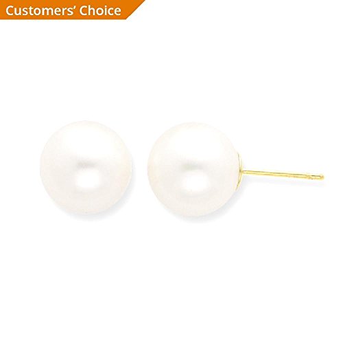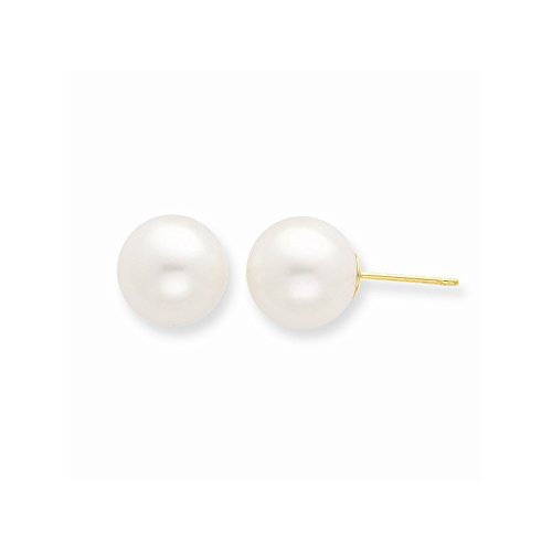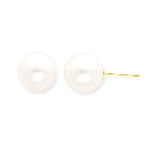 ICECARATS DESIGNER JEWELRY 14K YELLOW GOLD 10MM WHITE ROUND FRESHWATER CULTURED PEARL STUD BALL BUTTON STUD EARRINGS