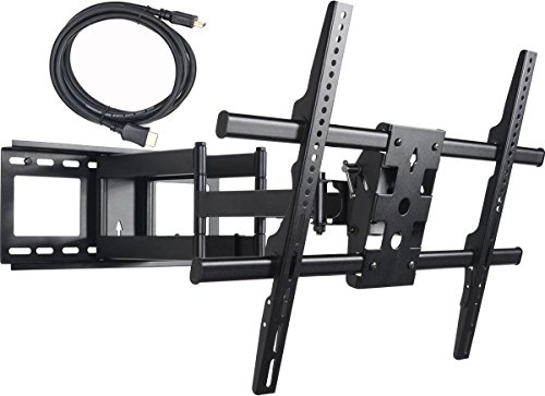 -. Feature : Articulating arm TV wall mount fits 37" 40" 42" 46" 47" 50" 52" 55" 58" 60" 62" 63" 65" 70" LCD LED Plasma display; Mounting hole pattern compatible from 200x200 300x300 300x200 400x200 400x300 400x400 600x400 up to 684x400mm / Supports display up to 165 lbs; Adjustable tilt +/-15 degrees and swivel side-to-side for comfortable viewing angle / Fit 16 inch apart wood studs. Arm fold less than 4" or extend 25" from wall; Post-installation level adjustment allows the TV to perfectly level / Lock and release safety system design on both mounting bracket; Cable management on arm; Easy installation and adjustment / Fit studs up to 18"; Standard mounting screws included