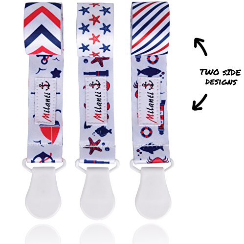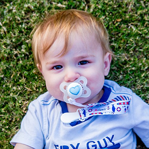 -. Title : Pacifier Clip for Boys, Pack of 3 by Milanti + 20 Name Tags Labels, Premium Quality Fun Designs Universal Holder Leash for Pacifiers, Teething Toy or Soothie, Baby Shower Gift Set