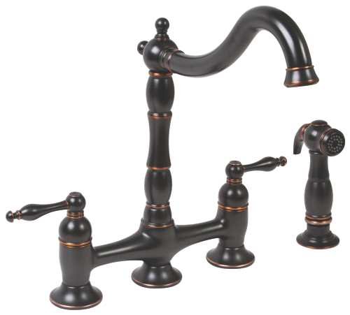 Premier 110702 Charlestown Two-Handle Bridge Style Kitchen Faucet with Matching Side Spray, Parisian Bronze