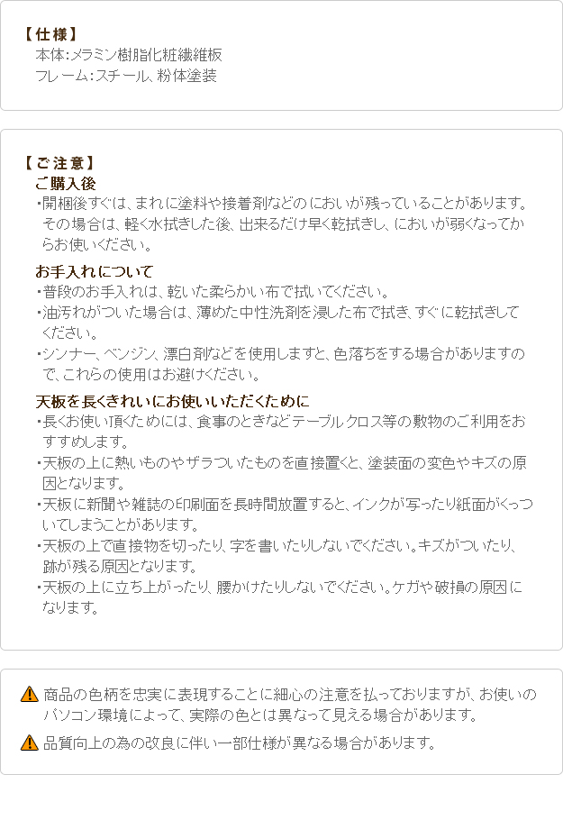 ●天板:メラミン樹脂化粧繊維板